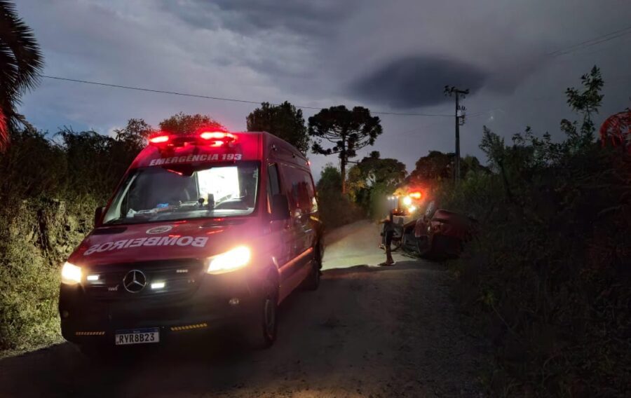 Motorista fica ferido após capotamento na zona rural de Porto União