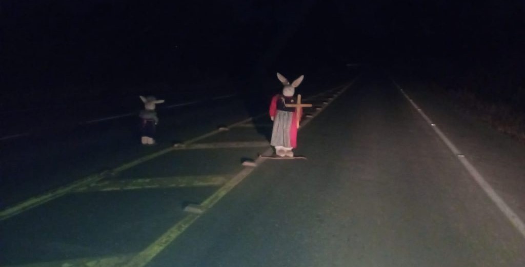 PNN Se era pra chamar atenção, chamou. Coelhos com cruzes aparecem no meio da pista da SC-477 em Papanduva 08/07/2025
