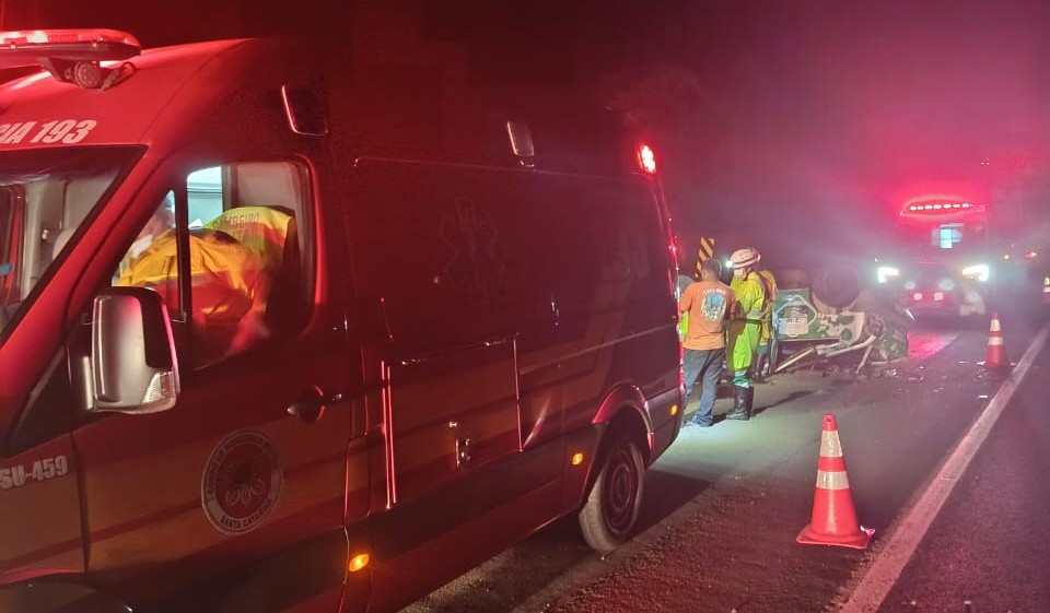 Condutor fica ferido após capotamento na BR-116 em Papanduva