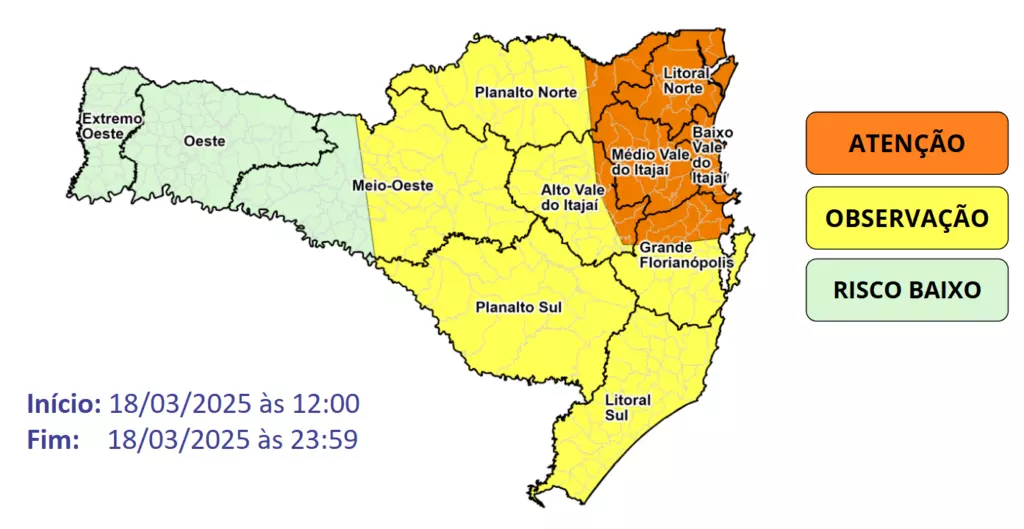 No Planalto Norte o risco é médio baixo para alagamentos e enxurradas, porém requer observação.
