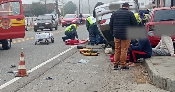 Na manhã desta segunda-feira (03), um grave acidente de trânsito resultou na morte de uma mulher em Três Barras. O acidente ocorreu por volta das 9h30 na Avenida Abrahão Mussi, no bairro São Cristóvão, quando um veículo capotou, deixando três pessoas feridas.