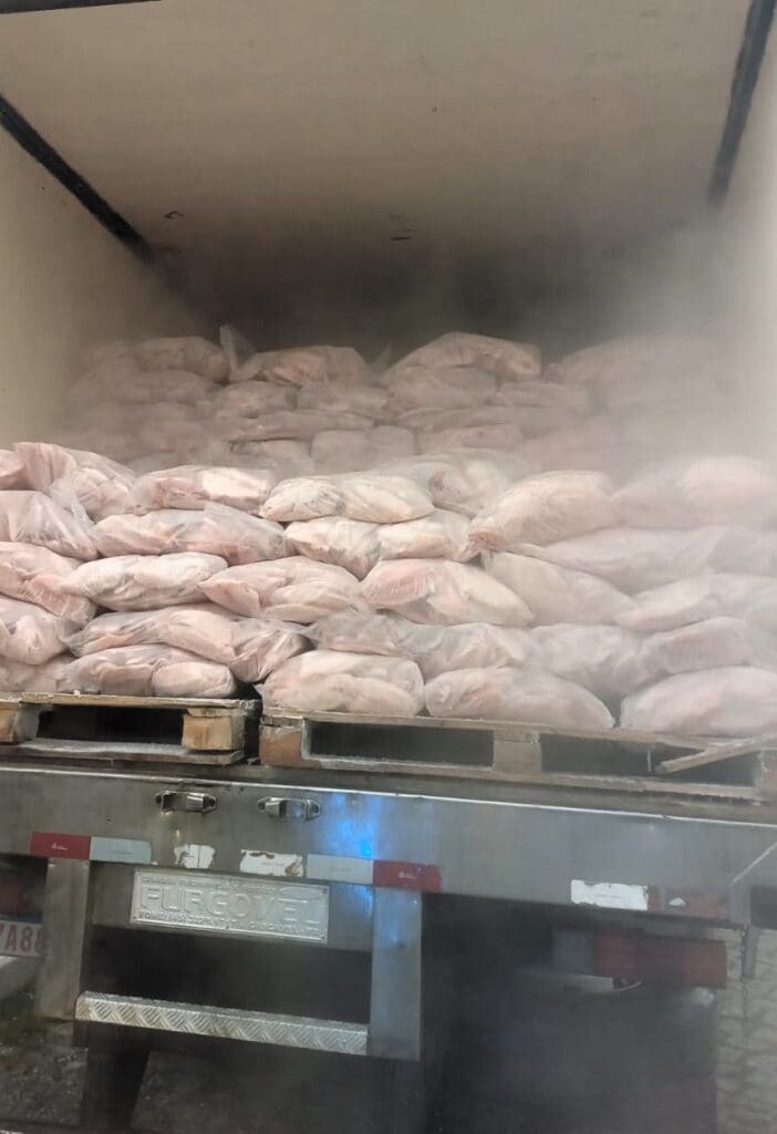 Ao abrir o baú de um caminhão durante fiscalização, os policiais encontraram embalagens plásticas com filés de tilápias, devidamente registrada em nota fiscal. No entanto, ao retirar alguns pacotes, foi possível ver embalagens de papelão ao fundo, que continham a mercadoria contrabandeada.